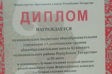 Диплом за 3 место "Лучшая столовая сельской школы" 15.12.2022