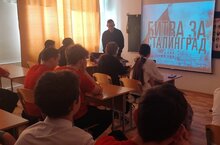 В рамках месячника военно-патриотической работы,Эмиль Русланович с обучающимися 7,8,9 классов провёл тематическую беседу "Битва за Сталинград" 21.02.2024