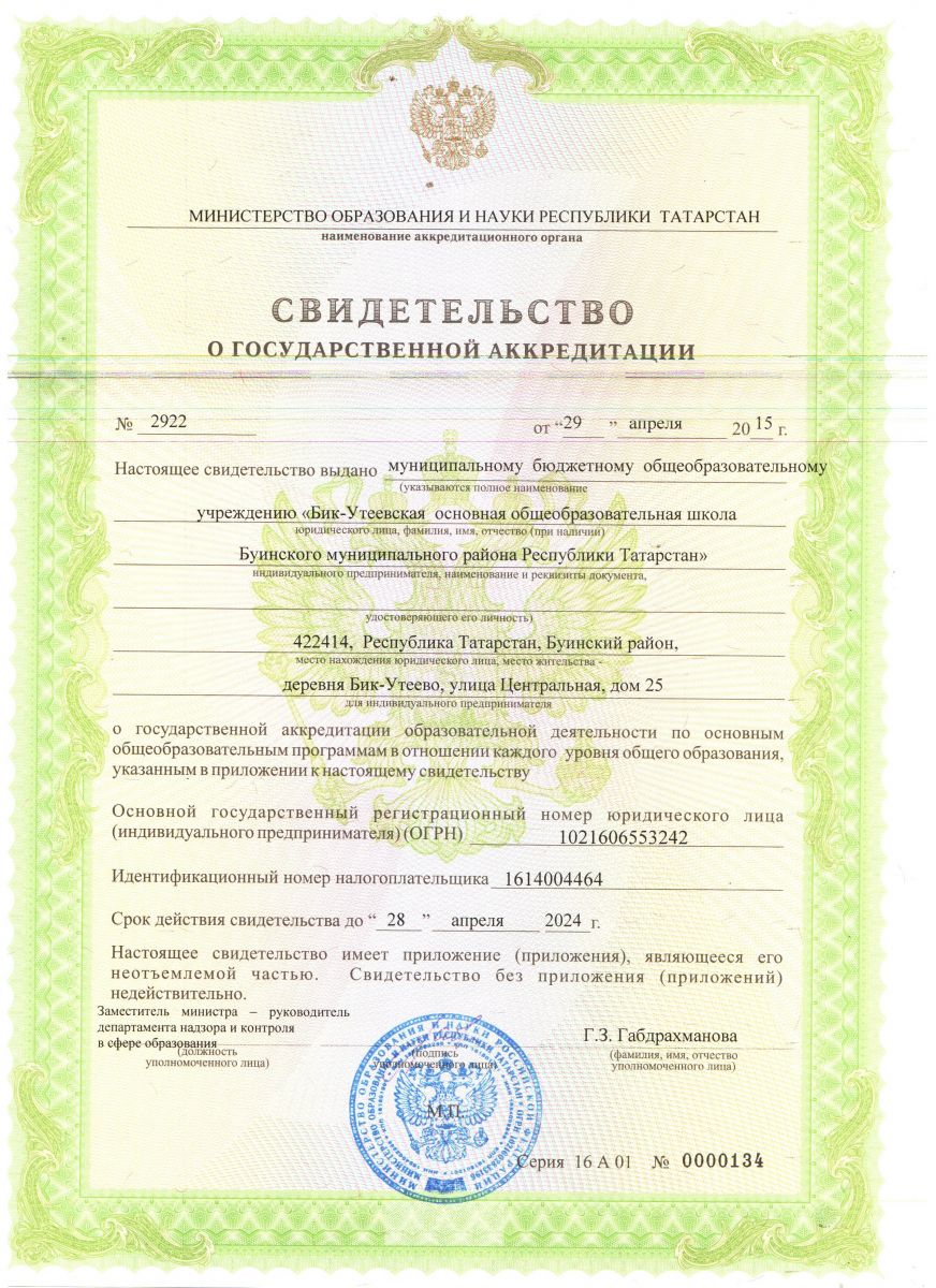 Муниципальное бюджетное общеобразовательное учреждение «Бик-Утеевская основная общеобразовательная школа Буинского муниципального района Республики Татарстан»