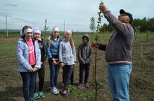 Фермер Замил Давлетшин прошлой осенью заложил фруктовый сад недалеко от деревни. Посадили более 9 тысяч саженцев яблонь и 5 тысяч малины. Учащиеся нашей школы посетили этот сад. Фермер с удовольствием поделился со своим опытом молодым земледельцам.