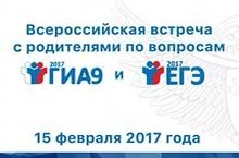 Встреча с родителями по вопросам ГИА 25.01.2017 15 февраля 2017 года руководитель Федеральной службы по надзору в сфере образования и науки Сергей Кравцов в Ситуационно-информационном центре ведомства проведет всероссийскую встречу с родителями по вопросам проведения государственной итоговой аттестации по программам основного общего и среднего общего образования в 2017 году. Руководитель и специалисты Рособрнадзора ответят на вопросы родителей, касающиеся: - организации и проведения в 2017 году ЕГЭ и ГИА-9; - содержания контрольных измерительных материалов ГИА-11 и ГИА-9; - особенностей проведения государственной итоговой аттестации для выпускников школ с ограниченными возможностями здоровья; - минимального количества баллов ЕГЭ для получения аттестата и поступления в вузы. В настоящее время уже принимаются вопросы: - по электронной почте ege@obrnadzor.gov.ru; - на странице Рособрнадзора в социальных сетях. Начало мероприятия: 11:00. Во время мероприятия на официальном канале Youtube (https://www.youtube.com/user/RosObrNadzor)