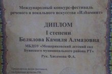 Международный фестиваль -конкурс детского молодежного творчества по речевому и вокальному искусству "Илхамият " 08.12.2018