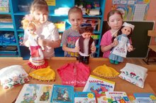 Цель: закреплять умение называть предмет одежды, ее цвет и количество на татарском языке, развивать разговорную речь детей, закреплять пройденный материал и уметь использовать в игровых ситуациях