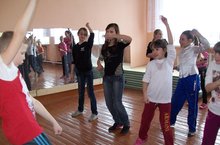 День дружбы. Участники флешмоба с 1по 6 классы танцевали под музыку разных народов: русский,татарский,чувашский,цыганский,испанский и другие танцы -