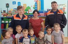 В рамках месячника по безопасного детей в детском саду прошла встреча с представителями МЧС.Спасатели рассказали детям о чрезвычайных ситуациях.