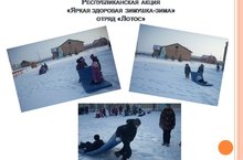 Участники проекта «SaMоSтоятельные дети» - отряд «ЛОТОС», провели республиканскую акцию «Яркая здоровая зимушка-зима». В рамках мероприятия были проведены подвижные игры, веселые старты, бег по снежным дорогам. Игры проводились с учащимися начальных классов. Кроме игр, дети из снега слепили Деда Мороза.