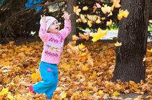 Красную под ноги стелет листву,