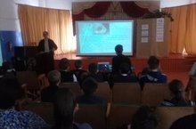 Учитель физики Абдуллин Н.Н. с учащимися 1-11 классов провел урок, посвященной ко Дню космонавтики.