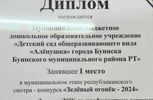 Муниципальное бюджетное дошкольное образовательное учреждение «Детский сад общеразвивающего вида "Аленушка" города Буинска Буинского муниципального района Республики Татарстан» занял I место в муниципальном этапе республиканского смотра-конкурса "Зеленый огонек-2024" в номинации "Лучшее ДОУ по профилактике детского дорожно-транспортного травматизма". Поздравляем!
