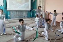 В старших и подготовительных группах прошли развлечения, где дети дружно готовились к полёту в космос, выполняя все упражнения разминки, играли в весёлые игры и встречались с "неземными цивилизациями..."