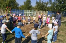 Воспитатель по обучению детей татарскому языку Усманова Г.И. с детьми старшей группы провела занятие на свежем воздухе, на тему: "Гали бездэ кунакта" 05.09.2018