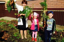 «Сбор урожая». Дети вместе с педагогом собирали урожай моркови, свеклы.