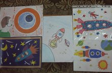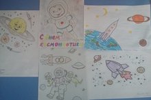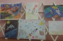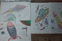 Выставка детских рисунков, посвященных Дню космонавтики в старшей группе 11.04.2016