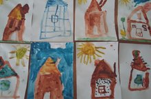 На занятии Миляуша Загитовна формировала у детей умение передавать в рисунке дома сказочных героев из сказки "Была у зайчика избушка лубяная, а у лисы - ледяная".