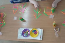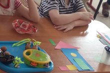 «Путешествуя в лесу с Буратино », дети вспомнили правила поведения в лесу, отгадывали загадки, мастерили домики из геометрических фигур по памяти, строили лесенку из цветной нарезанной бумаги для птенца, делили зверятам яблоко поровну на части.