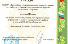 МБДОУ "Алтынчеч" занял 3 место по итогам готовности дошкольных образовательных учреждений к новому 2015-2016 учебному году 27.08.2015