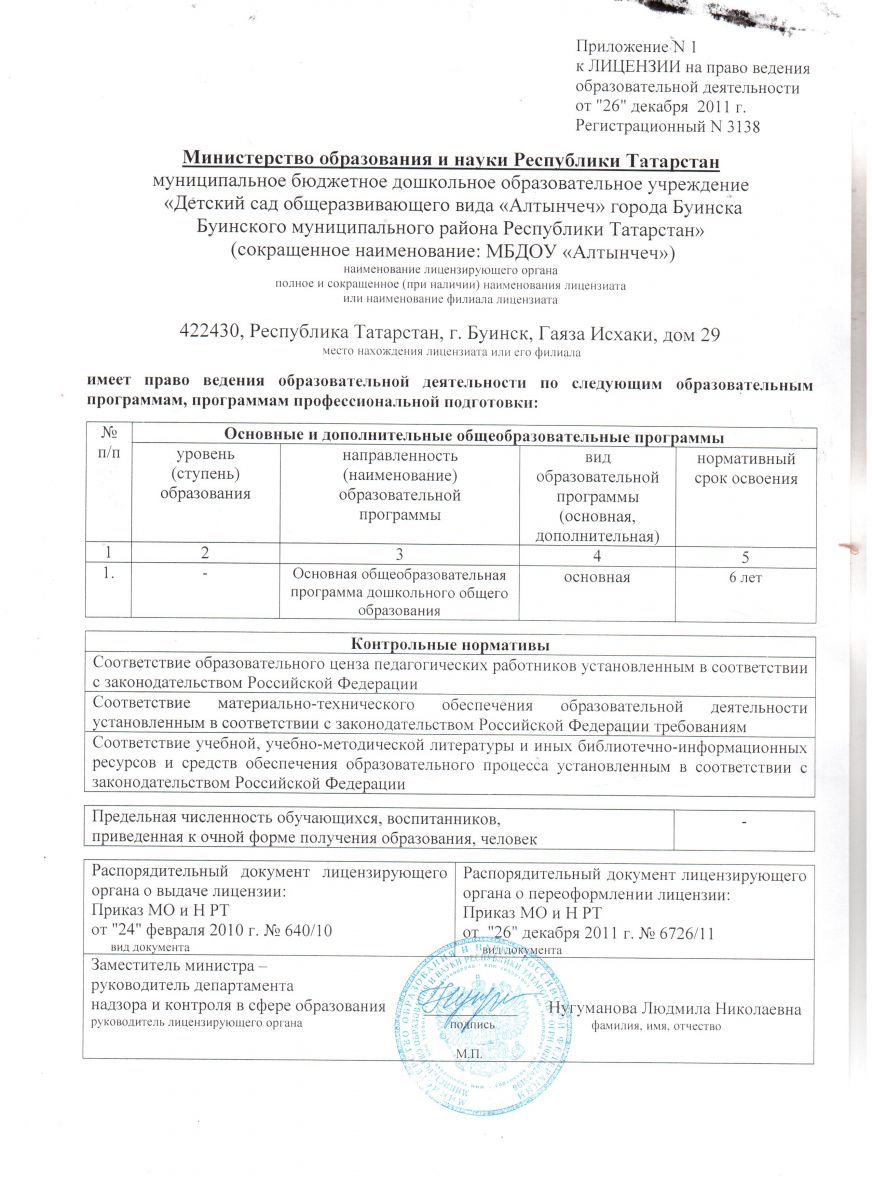 МБДОУ «Детский сад общеразвивающего вида «Алтынчеч» города Буинска Буинского муниципального района Республики Татарстан»