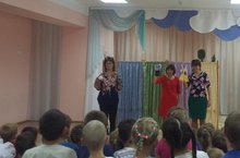 По субботам в музыкальном зале педагоги МБДОУ "Ромашка" показывают кукольные спектакли по сказкам . В эту субботу воспитатели показали сказку "Битый небитого везет".