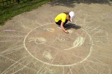 Дети подготовительных групп устроили конкурс рисунков на асфальте "Мы рисуем солнце".