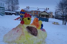 17 декабря педагоги детского сада вылепили возле главного входа символ Нового года - Петушка и курочку.