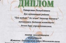 Воспитатель по обучению детей татарскому языку Ахмадуллова А.М. приняла участие в Республиканском детском и юношеском театральном фестивале "Сэяр" и была награждена дипломом за участие в 1 этапе конкурса.