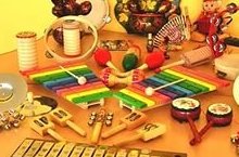 Завершилось занятие игрой на самодельных музыкальных инструментах.