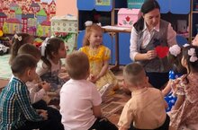 С веселыми кричалками, хороводами и русскими народными песнями встречали Масленицу воспитанники МБДОУ «Солнышко». Создать атмосферу поистине народного гуляния помогли несложные аксессуары. Детей нарядили в яркие русские костюмы, от чего они пришли в неописуемый восторг. Программа развлечения получилась очень веселой. Как положено на празднике, дети от души веселились: водили хоровод вокруг масленицы, пели русскую народную песню "Блины".
