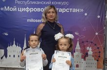 Итоги первого республиканского конкурса рисунков «Мой цифровой Татарстан» подвели сегодня в Казани. Организатором проведения конкурса выступило объединение женщин-депутатов Государственного Совета «Мәрхәмәт – Милосердие». В конкурсе принимали участие дети, которые с помощью программных средств и инструментов (компьютера, графического планшета и пера) выполняли компьютерные рисунки на заданные темы. На конкурс было направлено более 150 работ из муниципальных районов и городских округов республики. Конкурс проходил в три этапа (муниципальный, районный и республиканский). На первом этапе объединения женщин-депутатов городских и районных Советов отобрали по три победителя с каждого района. В начале сентября были определены победители второго этапа. А уже 10 сентября стали известны авторы лучших работ. Среди них были отмены работы наших воспитанников. Михайлов Никита стал победителем, а Сафина Алина - победителем народного голосования. Ребята были награждения грамотами и ценными подарками.
