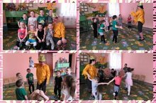 Сегодня в гости пришел клоун Бим-Бом, показал различные движения под веселую музыку "Танец маленьких утят". Дети с удовольствием участвовали в различных соревнованиях и играх "Найди ботинок", "Платочек или круг смеха"