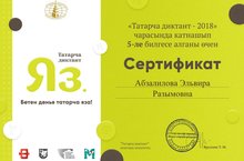 Поздравляем коллегу, воспитателя Эльвиру Разымовну Абзалилову, написавшего общесоюзный диктант на татарском языке на оценку «5».