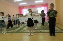 В нашем детском саду тоже состоялось мероприятие, посвященное празднованию Дня Победы. Предварительно с детьми в группах были проведены занятия, беседы о подвигах советских людей, в группах были оформлены выставки детских работ, оформлены родительские уголки, а праздник стал итогом этих мероприятий.
