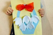 А ведь можно изготовить яркую аппликация и долго ею любоваться! Наши самые маленькие воспитанники вместе со своими мамами смастерили вот такие красивые открытки. -