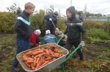Бүген мәктәптә эш гөрләп барды. Укучылар һәм укытучылар барысы да бергәләп җәй буе үстергән яшелчә уңышы җыеп алуда катнаштык.
