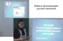 В связи с 75-летием Победы в Великой Отечественной войне обучающиеся 10 класса подготовили презентацию "Война в произведениях русских писателей". Они рассказали о писателях и произведениях, которые не включены в школьную рограмму. Кратко познакомили сюжетом произведений; говорили о фильмах, снятых по мотивам этих романов; дали рекомендации и списки книг для самостоятельного чтения.