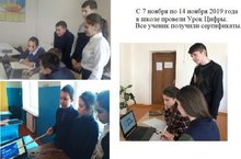 С 7 по 14 ноября 2019 года на классных часах, с охватом всех учащихся, провели Урок Цифры. Цель проведения Урока Цифры - повышение интереса молодежи к информационным технологиям, а также на инициирование и поддержку интереса к изучению информатики и программирования, повышение престижа ИТ-специальностей для молодых людей.
