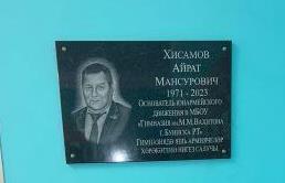 13 нче декабрь көнне гимназиядә истәлекле вакыйга булды. Уку йортының яшь армиячеләр хәрәкәтенә нигез салучы Айрат Мансур улы Хисамов исеме мәңгеләштерелде. Аның хөрмәтенә мемориаль такта ачылды. Монда А.М. Хисамовның туганнары, укучылары, хезмәттәшләре, яшь ярмиячеләр хәрәкәтендә булучы укучылар җыелды. Мемориаль тактаны гимназиянең иң өлкән укучысы – 104 яшьлек Р.И. Төхфәтуллин, ветераннар советы рәисе Җ.И. Хөснетдинова, Буа мәгариф бүлеге җитәкчесе урынбасары Д.Д. Мәхмүтова ачтылар. Гимназия музеенда килгән кунаклар өчен экскурсия үткәрелде. Экскурсовод укучылар мәктәп тарихы белән таныштырдылар. Рәүф абый үзенең мәктәптә уку чорын искә төшерде, истәлекләр белән уртаклашты.