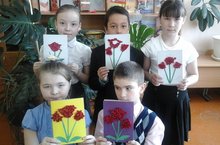 Башлангыч сыйныф укучылары әниләренә тәбрикләүләне отрытка аша җиткерә.Алар аны бизәү һәм матур котлау сүзләрен язу белән мәшкүл.