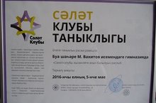 Сәләт клубы таныклыга М Вахитов исемендәге гимназиядә "Сәләт" клубы эшчәнлеге алып баруын раслый 17.05.2016