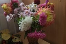 Ко дню учителя обучающиеся 9-11 классов организовали выставку композиций из цветов