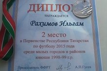 Обучающийся гимназии Рахимов Ильхам принимал участие в Первенстве РТ по футболу среди малых городов и районов юноши 1998/1999г.р. и занял 2 место. ПОЗДРАВЛЯЕМ!