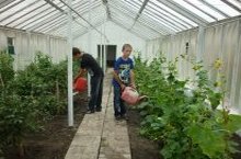 Ежедневно ребята из лагеря труда и отдыха трудятся в теплице: полив овощей, подвязка огурцов и помидоров, прополка. И на обед можно попробовать свои чисто экологические продукты!