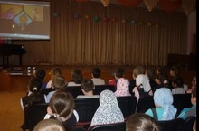 Сегодня, 17.03.2014 года, в гимназии открылась неделя английского языка и истории. Учителя английского языка Исхакова В.Н. и Азизова Р.Р. организовали для обучающихся начальных классов просмотр обучающего мультфильма на английском языке «Muzzy in Gondoland».