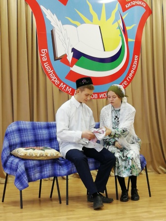 В честь Года родных языков и единства народов в Республике Татарстан состоялся литературно-музыкальный вечер, посвященный 130-летию со дня рождения выдающегося драматурга Мирхайдара Файзи. Мероприятие подготовили учащиеся 10 классов. Они рассказали 7-9 классам о жизни и творчестве драматурга, познакомили с историей написания драмы “Галиябану”, показали отрывки, спели песни из спектакля. В конце вечера артисты академического театра им.г. Камала посмотрели отрывки из спектакля.