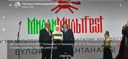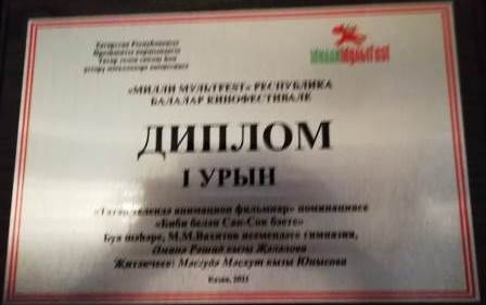 22 нче апрель көнне Г. Тукай исемендәге Татар дәүләт филармониясенең концертлар залында “Милли мультFest” Балалар Республика кинофестиваленең бүләкләү тантанасы узды. Мәктәпләр арасында “Татарча анимацион фильмнар” номинациясендә М.М. Вахитов исемендәге гимназиянең 9 нчы сыйныф укучысы Әминә Җәләлова җиңү яулады. Аның “Биби һәм “Сак-Сок бәете” мультфильмы I урынга һәм 100 мең сум күләмендә акчалата бүләккә лаек булды. Әминәне һәм аның җитәкчесе М.М. Юнысованы зур җиңүләре белән котлыйбыз! Киләчәктә дә яңа проектлар һәм уңышлар телибез!