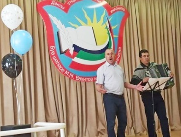 Сәхнәгә райныбызның танылган җырчысы Сәйдәш Хәсәнҗанов чыкты. “Ирин” исемле җырны башкарды. Ким абый аңа кушылып җырлады. Туган ягына багышланган әлеге җырның сүзләрен Хәвис Гайсин, ә көен Ким Шакиров язган икән! Кунагыбыз “Бишек җыры”, “Тар басмада” һ.б. бик күп җырларга көйләр язган. Районыбызның танылган җырчысы Ленар Салихов та аның җырларын бик оста итеп башкарды. Ким Шакиров укучылар биргән сорауларга җавап бирергә дә өлгерде. “Авиамодельләштерү” түгәрәге җитәкчесе Рифкать Хәсән улы әйткәнчә, аңа да сүз бирелде. Ул “Авиамодельләштерү” түгәрәгенә йөрүче егетләре белән түгәрәк эшчәнлеген, аның тарихын сөйләде, укучылар самолетларын очырып та күрсәттеләр.