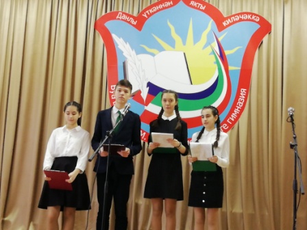 15 февраля в актовом зале гимназии прошел литературно-музыкальный вечер “Жизнь моя песней звучала”, посвященный 115 летию патриота и героя, великого татарского поэта М. Джалиля в рамках года Родных языков и народного единства. В мероприятии участвовали ученики 5а, 6б, 10,11 классов.Они познакомили учащихся довоенной и военной жизнью и творчеством поэта, о трудном пути моабитских тетрадей. Во время мероприятия прозвучали детские песни поэта, песни других авторов о войне, стихи из моабитской тетради. Учащиеся почтили память 11 джалиловцев минутой молчания. В конце литературно-музыкального вечера на сцену поднимались участники муниципального этапа конкурса “Джалиловские чтения”. Им вручили сертификаты и грамоты.