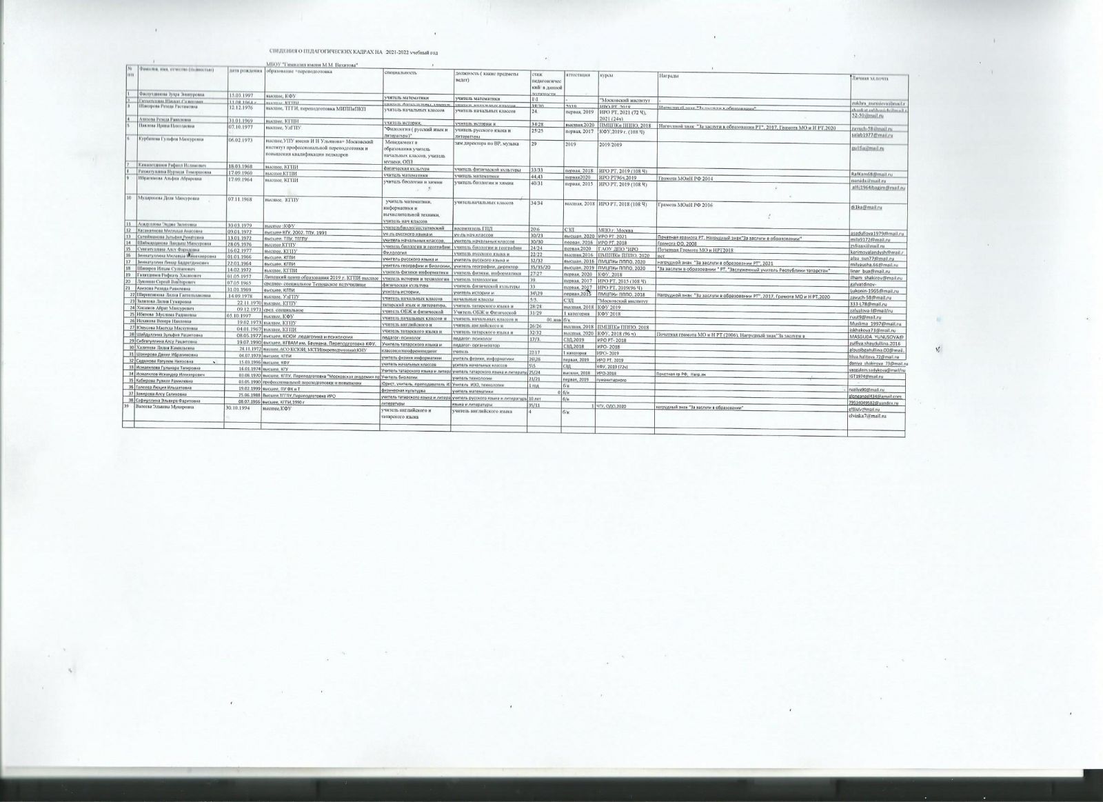 Сведение о педагогических кадрах на 2020- 2021 учебный год
