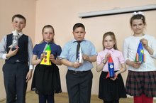 Ученики начальных классов филиала д. Новые Мертли изготовили своими руками из бросового материала макеты ракет.