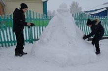 Скоро Новый Год. Учащиеся готовятся к празднованию этого замечательного праздника, и уже сделали первые снежные фигуры.