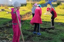 Учащиеся средних классов провели субботник на пришкольном участке.